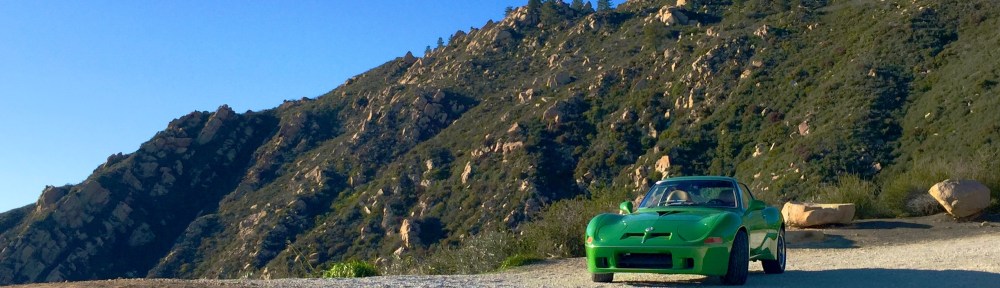 My father, Dan McCue, designed and built this beautiful and powerful hybrid car on the chassis of a 1973 Opel GT in Santa Barbara, California. The body has been masterfully re-imagined with the idea of form following function: Flared fenders to accommodate wide wheels and tires. Air intakes and outlets for brake cooling. Massive air intake for radiator and oil cooling heat exchangers. The hood has a gracefully sculpted NACA scoop to feed cool air to the naturally aspirated Weber carburetor, bolted to a ported Mazda RX-7 13B rotary engine. The driveline, brakes and suspension have been completely replaced with custom fabricated parts and RX-7 suspension elements. The custom free-flow exhaust makes quite a throaty roar.